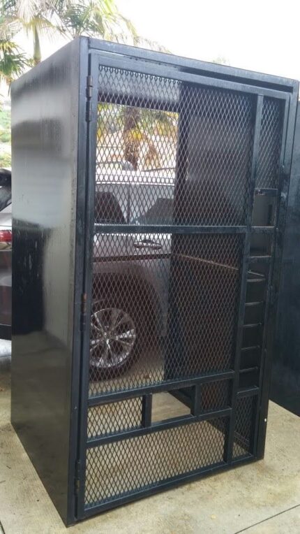 A vending machine cage is a physical barrier placed around the vending machine which increases security for both the vending machine and its contents often made of durable materials like aluminum or steel.